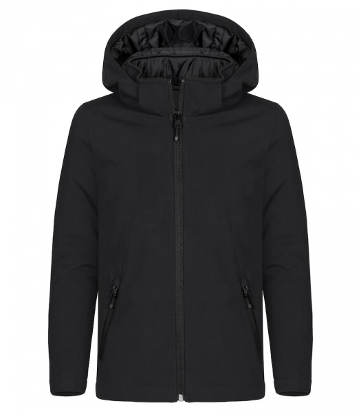 Ein sauber geschnittene Softshelljacke mit abnehmbarer kindersicherer Kapuze. Zwei Aussentaschen mit umgekehrten SBS-Reissverschlüssen. Ein leicht abnehmbares Etikett für Rebranding. Inklusive schwarzer Fütterung und einem gestickten Reissverschluss.