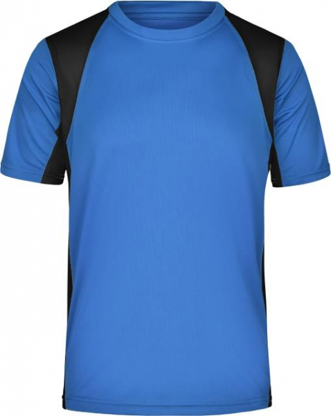 Atmungsaktiv, feuchtigkeitsregulierend und schnelltrocknend, leicht und komfortabel, kontrastfarbige Mesheinsätze, Reflexdruck (ohne Schutzfunktion) im Rückenteil