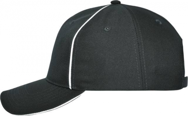 Reflektierende Elemente (ohne Schutzfunktion), 6 gestickte Luftlöcher, laminierte Frontpanels, 6 Ziernähte am Schild, wattiertes Schweissband, Stoffband in mattsilber mit Metallschnalle und -öse