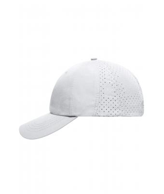 Sommerliche Aufmachung durch hochwertige Laser Cut Akzente an den rückseitigen Panelen, 2 gestickte Luftlöcher, 4 Ziernähte am Schild, leicht laminierte Frontpanels, gefüttertes Microfaser-Schweissband, Klettverschluss