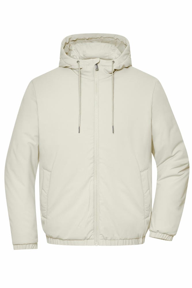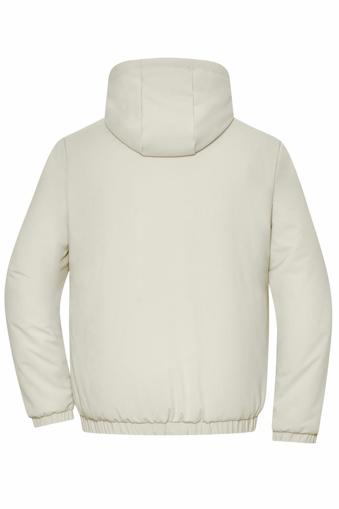 Wasser- und schmutzabweisend, Kapuze mit Kordel, Gummizug an Ärmeln und Bündchen, 2 Seitentaschen mit Druckknopf, Innentasche mit Reissverschluss, Veredelungszugang im Rücken, leichtes Material