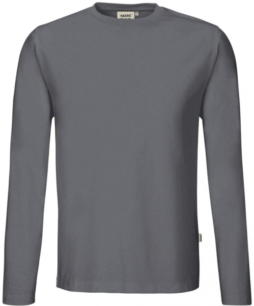Besonders strapazierfähiges Langarmshirt mit rundem Halsausschnitt, geripptem Halsbündchen und Nackenband. Leasingkoller zur einfachen Kennzeichnung in der gewerblichen Wäscherei und Aufhängebänder im Saum. Hergestellt aus schwerem, besonders pflegeleichtem und funktionellem Single-Jersey aus dem HAKRO-Performance-Materialmix MikraLinar®. Gewebtes HAKRO-Necklabel aus hochwertigem Kettsatin mit weichen, ultraschallgeschnittenen Bandkanten für höchsten Tragekomfort und gewebtes HAKRO-Flaglabel an der linken Seitennaht.