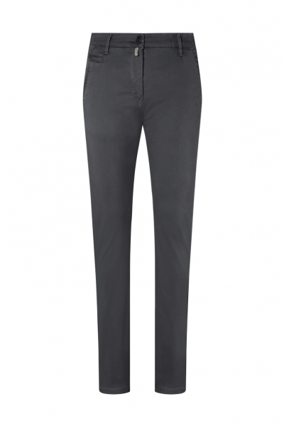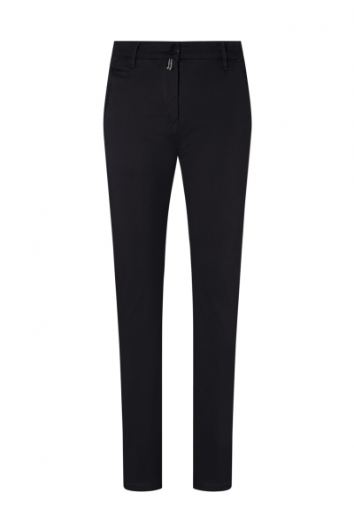 Leger geschnittene Chinohose im 5-Pocket-Design. Zwei Eingrifftaschen, Münztasche, zwei Gesäßtaschen, Gürtelschlaufen und Reissverschluss von YKK®. Dekorativer Knopf mit HAKRO Schriftzug und Patch am hinteren Bund. Stickerei auf den Gesäßtaschen, am Reissverschlussuntertritt und am Bund. Paspelierung mit Futterstoff am Innenbund sowie an den unteren Außenbeinnähten, so dass die Hose auch gekrempelt getragen werden kann. Weicher, vorgewaschener, strapazierfähiger und elastischer Baumwoll-Satin. Verfügbar auch als Unisexmodell. Normale Passform: Damen Regular Fit.