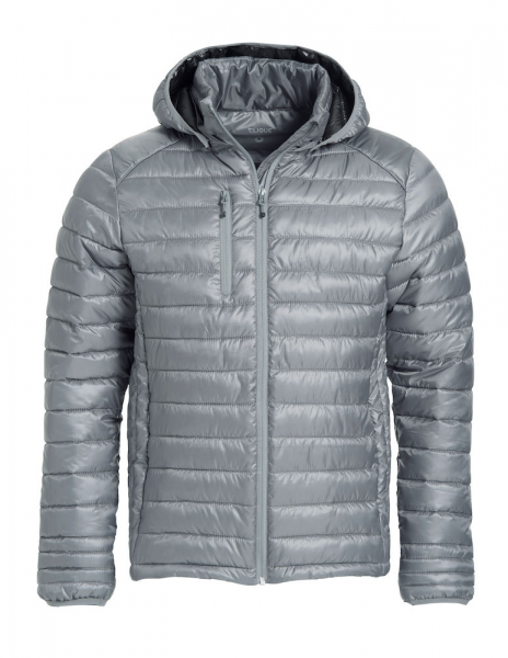 Moderne Steppjacke mit daunenähnlicher Wattierung. Drei Aussentaschen mit Reissverschlüssen und Kopfhörerführung Innen, die Kapuze ist abnehmbar. Elastischer Abschluss an den Ärmeln.